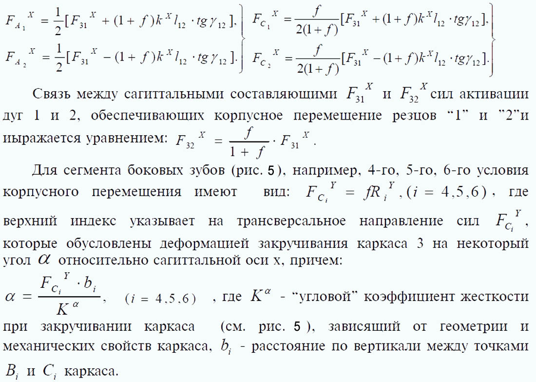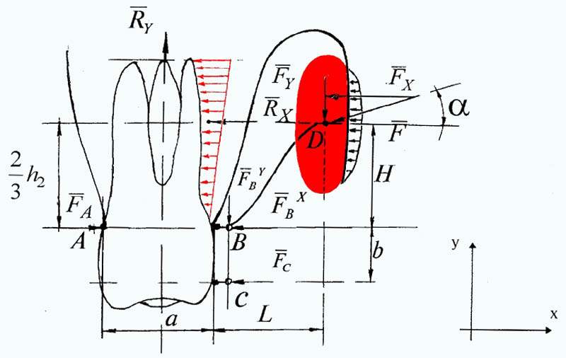 На рис. 1 представлена расчетная схема биомеханического взаимодействия каркаса с сегментом боковых зубов, например, 4-м, 5-м, 6-м.